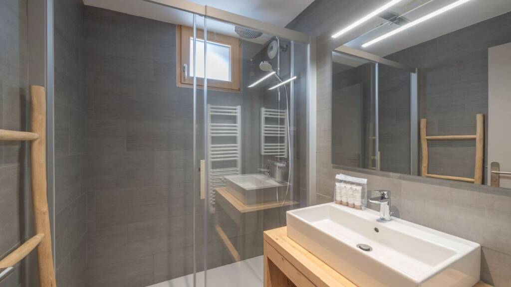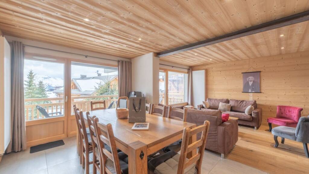 From the moment you step inside, you'll be embraced by the warm and inviting atmosphere, enhanced by light wood accents that create a cosy, welcoming feel. The bright living room opens onto a friendly dining area and a fully equipped kitchen - perfect for sharing special moments with family or friends after a day in the mountains. The four comfortable bedrooms, each styled with Alpine charm, and the three modern bathrooms ensure maximum comfort for everyone.