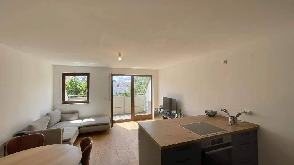 - Lichtdurchflutet und offen - dieser Wohnbereich lädt dazu ein, die Tür zum Balkon zu öffnen und den Blick ins Grüne zu genießen