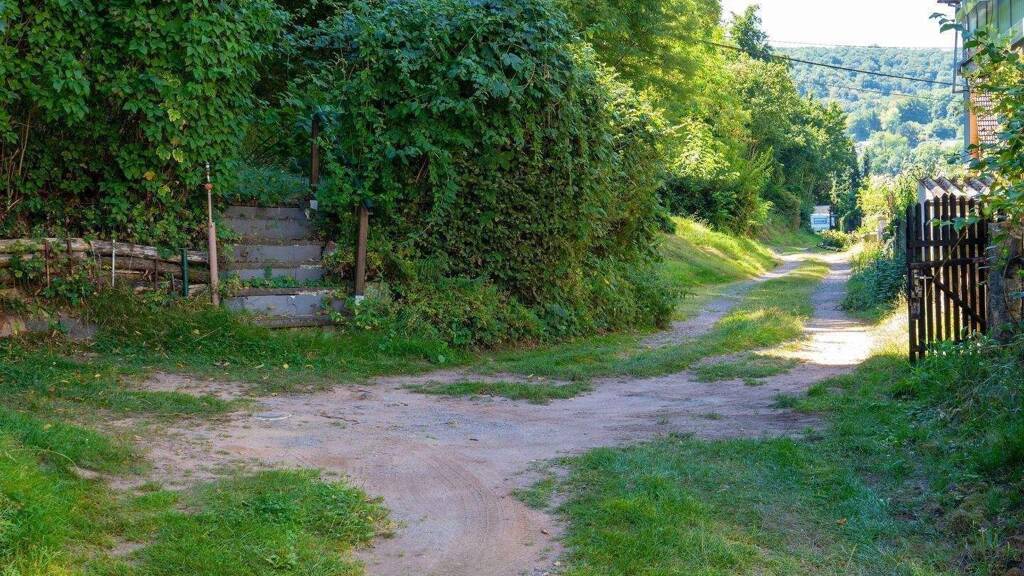 Hinter dem Grundstück kann ein Waldgrundstück gepachtet werden (70 € jährlich), das eine Zufahrt zum Haus inkl. Parkplatz bietet.