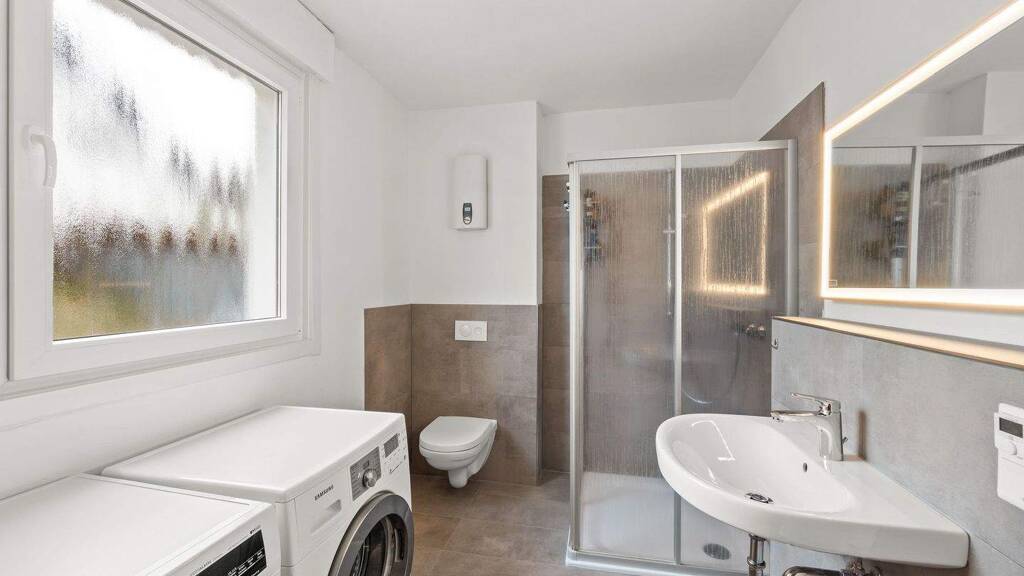 Im Erdgeschoss erwarten Sie ein modernes Tageslichtbad mit bodentiefer Dusche, eine gepflegte Küche, ein gemütliches Wohnzimmer sowie ein Esszimmer mit direktem Zugang zum Keller. Über die Holztreppe gelangen Sie ins Dachgeschoss, das zwei Schlafzimmer sowie eine praktische zusätzliche Toilette beherbergt. Der Spitzboden schafft weiteren Stauraum.