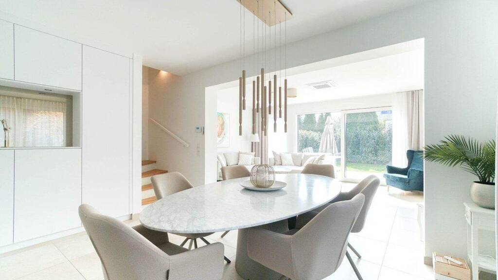 Garten-Oase: Große Glasfronten öffnen den Blick auf die Terrasse und den privaten Garten - Ihre persönliche Erweiterung des Wohnzimmers ins Grüne.