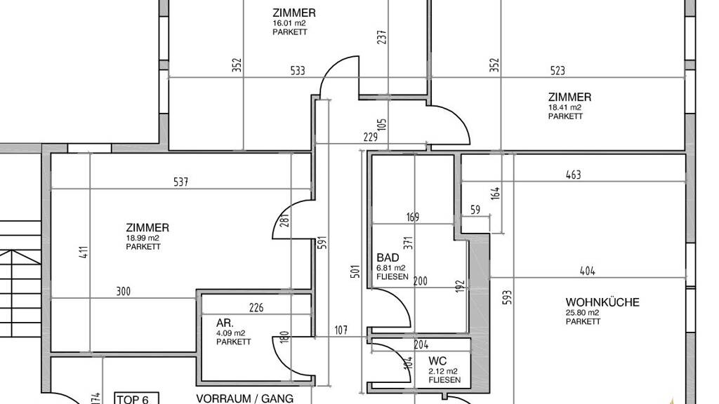 Die Wohnung TOP 6 wurde teilsaniert, neuer Parkett Boden, neue Innentüren, weiß ausgemalt, neue Küche 01/2023