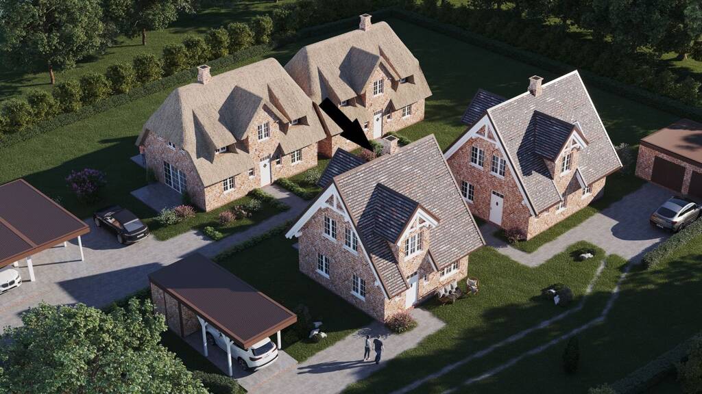 Dieses exklusive Einfamilienhaus befindet sich in der Neubauprojektierung und bildet Teil eines charmanten Ensembles, das aus drei beeindruckenden Häusern besteht: einem großen Reetdachhaus und zwei Häusern mit Hartdächern, die mit antiken Dachpfannen gedeckt sind. Die Baugenehmigung für dieses Projekt liegt bereits vor, sodass Ihrem Traum vom Eigenheim nichts mehr im Wege steht. Auf einem 351 Quadratmeter großen Grundstück gelegen, bietet das Haus eine Wohnfläche von insgesamt 81 Quadratmetern. Die hochwertige Ausstattung und die sorgfältige Auswahl an Materialien machen dieses Objekt zu einem wahren Juwel. Besonders hervorzuheben sind das wunderschöne antike Verblendermauerwerk, die nach außen öffnenden Tischlerfenster sowie die Verwendung von antiken und antikisierten Baustoffen sowohl im Innen- als auch im Außenbereich. Beim Betreten des Hauses gelangen Sie über eine einladende Diele ins Innere. Zur einen Seite befindet sich ein praktisches Gäste-WC auf Ebene sowie der Technikraum, der geschickt unter der Treppe untergebracht ist. Eine stilvolle Glasschiebetür trennt die Diele vom großzügigen Wohn- und Essbereich ab. Dieser Bereich bietet ausreichend Platz für eine Küche und überzeugt durch große Fenster- und Türöffnungen, die einen herrlichen Blick und Zugang zum Garten ermöglichen. Das Untergeschoss besticht durch wunderschöne Naturscheinfliesen in den Badezimmern, im Dielenbereich und in der Küche, während der Wohnbereich mit edlen Eichenholzböden ausgestattet ist. Über eine elegante Eichenholztreppe gelangen Sie ins Obergeschoss, wo zwei komfortable Schlafzimmer und zwei moderne Badezimmer auf Sie warten. Diese Räume bieten ausreichend Platz und Komfort. Im Außenbereich befindet sich ein Carport mit Abstellmöglichkeiten. Das Grundstück und das Objekt werden schlüsselfertig errichtet, inklusive der hochwertigen Außenanlagen, Terrassen mit großen Krustenplatten, wunderschönen Zuwegungen und einer wunderschönen Bepflanzung. Es handelt sich um eine separate Zuwegung, die optimale Privatsphäre gewährleistet. Überzeugen Sie sich selbst von diesem charmanten Haus und vereinbaren Sie einen Besichtigungstermin mit uns.