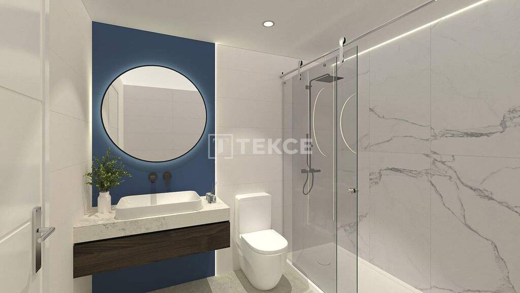 Die Innenausstattung der Wohnungen ist auf funktionales und komfortables Wohnen mit hellen und offenen Räumen ausgelegt. Jede Wohnung verfügt über 2 Schlafzimmer und 2 Badezimmer, eine voll ausgestattete Küche mit Geräten sowie einen geräumigen Wohnbereich, der mit Außenterrassen verbunden ist. Je nach Modell können die Wohnungen auch über eine große Sonnenterrasse oder ein Untergeschoss verfügen, was zusätzliche Flexibilität für Stauraum oder Freizeitbereich bietet.