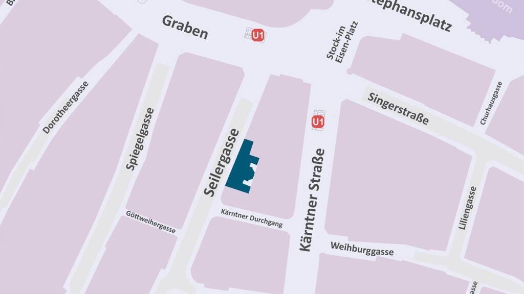 Die Lage im Dachgeschoß eines historischen Stil-Gebäudes in der Seilergasse ist absolut im Zentrum der Stadt. Nur wenige Meter sind es zur U1 Station Stephansplatz/Graben und somit ist die Adresse für Sie selbst aber auch für Besucher öffentlich ideal angebunden. Die Wohnung ist mit dem Lift erreichbar.