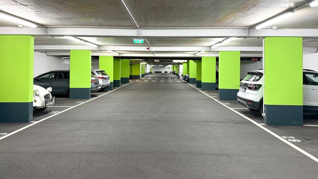 Zur Vermietung kommt ab 01.04.2026 ein KFZ-Abstellplatz Nr. 33 in einer Neubau-Tiefgarage in der Nußallee 4-6. Die Einfahrt (am Plan rechts) erfolgt über ein elektrisches Tor, das Sie bequem sowohl bei der Ein- als auch bei der Ausfahrt mittels Chip öffnen können. Zu Fuß gelangen Sie durch den Haupteingang des Gebäudes entweder mit dem Aufzug oder klassisch über das Stiegenhaus.
