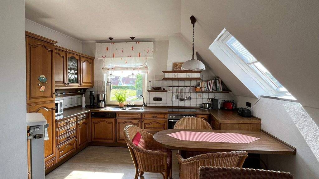 Im Erdgeschoss bieten ca. 102 m² Wohnfläche ein helles Wohnzimmer, ein Schlafzimmer, ein Esszimmer mit angrenzender Küche sowie ein Tageslichtbad mit Dusche, Eckbadewanne und Fußbodenheizung. Ein Gäste-WC und der Vollkeller mit viel Stauraum runden das Angebot ab.