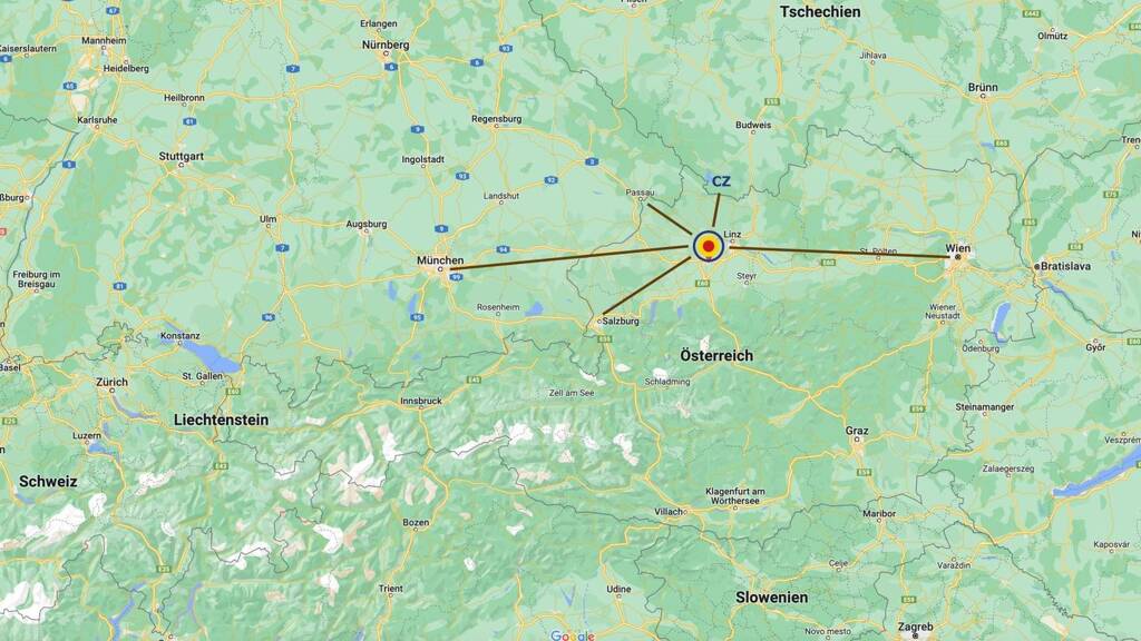 LAGE - INFRASTRUKTUR: Einwohner Wels: ca. 64.400 Autobahnanschluss ÖBB Terminal: ca. 1 km Autobahnanschluss Marchtrenk West A25: ca. 2,5 km B1 Wels - Linz: ca. 2,5 km Linz: ca. 23 km Wels Zentrum: ca. 3 km Marchtrenk Zentrum: ca. 4 km ÖBB Güterterminal Wels: ca. 500 m WELAS Park: ca. 4 km Salzburg: ca. 110 km Wien: ca. 190 km Passau: ca. 90 km München: ca. 210 km Tschechien: ca. 60 km