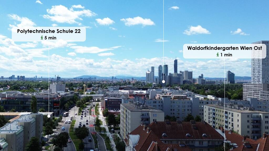 Das Objekt zeichnet sich durch eine perfekte Infrastruktur aus. Allen Voran ist die unmittelbare Nähe zum Donauzentrum zu erwähnen, ebenso die Alte Donau und viele Geschäfte des täglichen Bedarfs sowie zahlreiche Restaurants.