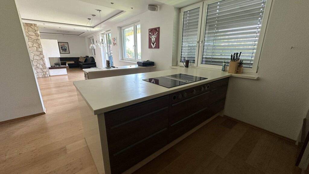 Die sehr große generalsanierte Wohnung im EG hat ca. 165 m². Im Zuge der Sanierung dieser Wohnung wurde eine neue Fußbodenheizung eingebaut.