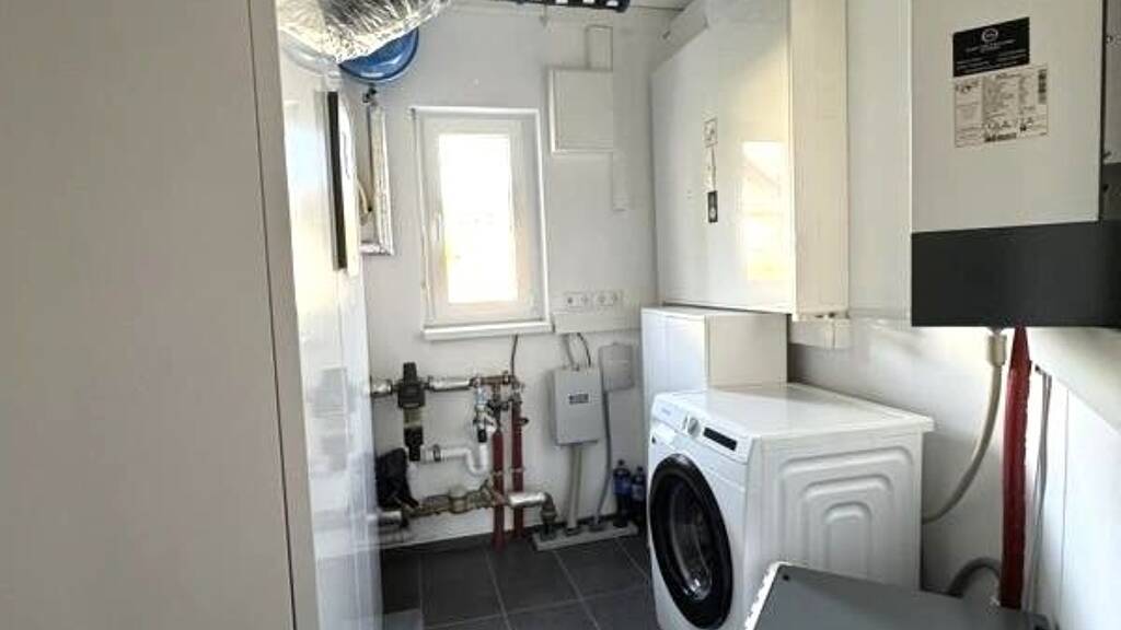 Im Erdgeschoss sind die Heizungsanlage mit Batteriespeicher der Photovoltaikanlage im Hauswirtschaftsraum untergebracht. Zudem finden Sie dort ein kleines Badezimmer mit Dusche, während das Obergeschoss über ein großzügiges Bad mit Badewanne und Bidet verfügt. Die Wohnfläche beträgt ca. 111 m².