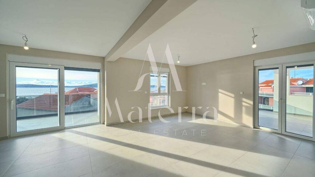 Ein Penthouse steht zum Verkauf in einem Neubau in Brodarica, nahe Sibenik, nur 100 Meter vom Strand entfernt. Die Wohnung befindet sich im obersten Stockwerk, hat eine Fläche von 131,69 m² und bietet einen Meerblick. Sie besteht aus: