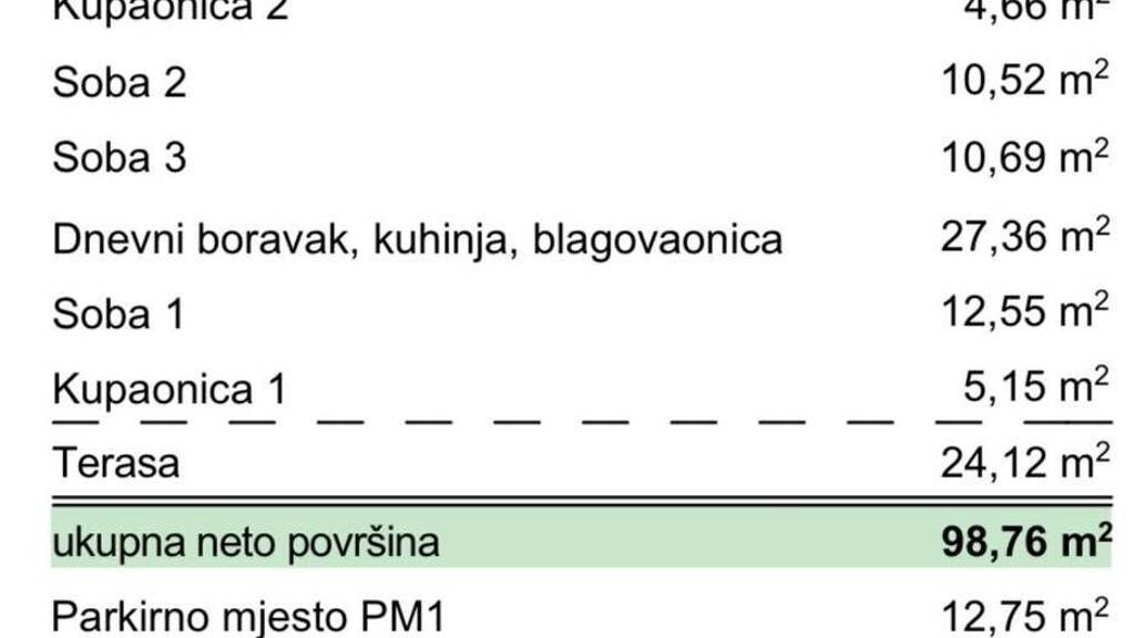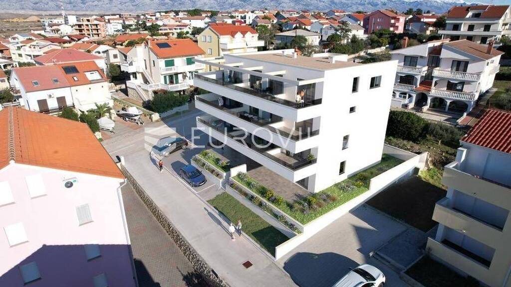 Predstavljamo Vam projekt vrhunske novogradnje u Povljani na otoku Pagu na top lokaciji! Projekt se sastoji od zgrade s 8 jedinica stambene namjene rasporedenih na ukupno 3 etaze. Zgrada je udaljena svega 180 m od mora i popularnih pjescanih plaza ovog mjesta. Takoder, u neposrednoj blizini se nalazi i centar Povljane kao i svi ostali sadrzaji potrebni za kvalitetan i ispunjen zivot ili odmor.S2 - 89,94m2 - prizemljeStan S3 nalazi se na 1. katu zgrade te je ukupne neto korisne povrsine 89,94m2 dok njegova bruto povrsina iznosi 125,68m2. Sastoji se od otvorenog prostora kuhinje, blagovaonice i dnevnog boravka (27,36m2), hodnika (3,71m2), dvije potpuno opremljene kupaonice (5,15m2 i 4,66m2), tri spavace sobe (12,55m2, 10,96m2 i 10,52m2) te natkrivene terase s kojeg se pruza prekrasan pogled na more (24,12m2). Stanu uz to pripada i vrt (27m2) te jedno vanjsko parkirno mjesto.Zgrada se trenutacno nalazi u fazi zavrsnih radove te se useljenje ocekuje pocetkom 2026. godine.Od opreme i materijala valja istaknuti :Konstrukcija od armiranog betona s 10 cm termoizolacijeKvalitetna ALU i PVC stolarija s komarnicima i roletama na elektricno upravljanjeVisoka kvaliteta keramike i sanitarijaProtuprovalna i protupozarna vrataKlima uredaji u svim sobama i dnevnom boravkuStaklene ograde na balkonimaDvoriste ogradeno kamenim zidovimai jos mnogo toga..Povljana je sarmantno dalmatinsko mjesto na otoku Pagu, poznato po dugim pjescanim plazama i kristalno cistom moru. Idealan je izbor za nekretnine za odmor ili turisticki najam - autentican dalmatinski ugodaj, prostrane terase i blizina lokalnih restorana. Dobra prometna povezanost cestom te blizina vaznijih otocnih i kopnenih odredista cine Povljanu privlacnom investicijskom lokacijom na Pagu.Za vise informacija i dogovor o razgledavanju, slobodno nam se obratite... Vise na eurovilla.hr, ID: 157586