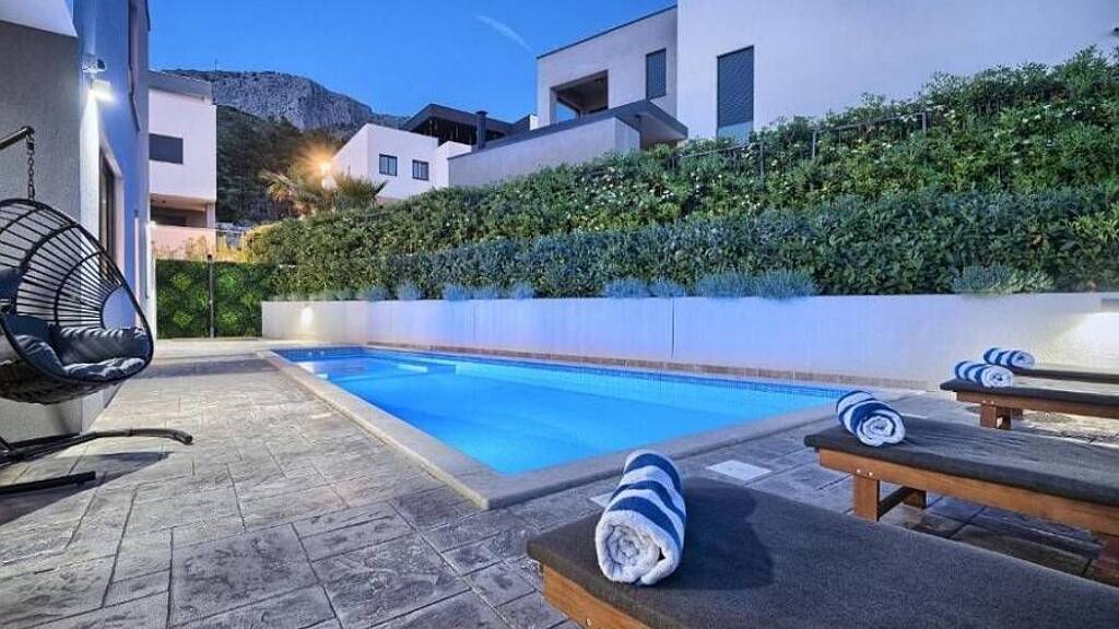 Im Herzen einer exklusiven, bewachten Wohnanlage in Strozanac, nur wenige Fahrminuten von Split entfernt, liegt diese herausragende, moderne Villa, die Eleganz, Privatsphäre und zeitgemäßen Komfort vereint. Die Anlage ist ausschließlich für Eigentümer zugänglich und bietet dank Videoüberwachung und kontrolliertem Eingang zusätzliche Sicherheit und ein Höchstmaß an Ruhe und Privatsphäre.