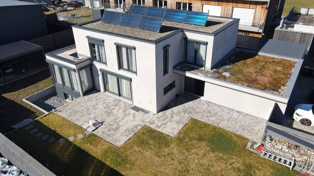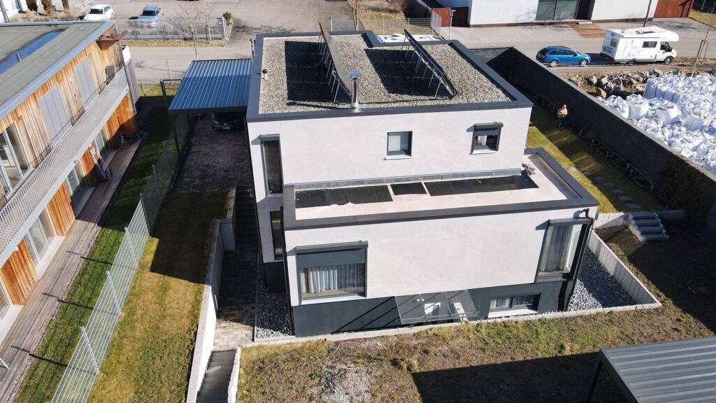 Dieses außergewöhnliche Flachdach-Wohnhaus mit Einliegerwohnung vereint moderne Architektur, luxuriöse Ausstattung und nordisch inspirierte Eleganz. Erbaut im Jahr 2014 und ab 2022 mit höchster Sorgfalt und Liebe zum Detail umfassend renoviert, präsentiert sich die Immobilie heute als ein Refugium für anspruchsvolles Wohnen auf höchstem Niveau.