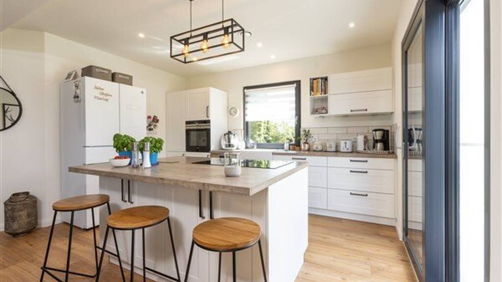 Das EDITION 120 von Bien-Zenker ist die ideale Lösung für Familien, die sich ein funktionales und stilvolles Zuhause auf einem kleineren Grundstück wünschen. Dieses projektiertes Fertighaus bietet Platz für vier Personen und überzeugt mit einer durchdachten Raumaufteilung. Im Erdgeschoss erwarten Sie offene Wohnräume, die perfekt geeignet sind für gesellige Abende oder entspannte Stunden mit der Familie. Ein Gäste-WC sowie ein Technikraum komplettieren das Angebot auf dieser Ebene. Das Obergeschoss beherbergt ein großzügiges Elternschlafzimmer, zwei Kinderzimmer und ein großes Badezimmer - optimal für Familienleben, das sowohl Privatsphäre als auch gemeinschaftliches Miteinander ermöglicht.