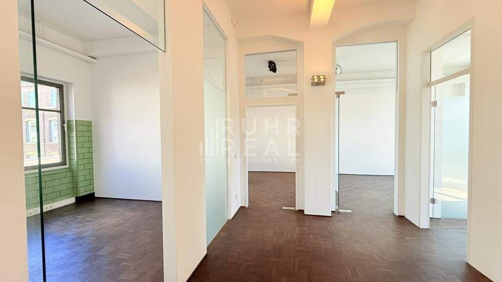 Die moderne Büroflächeauf dem ehemaligen Möller-Glöckner-Gelände überzeugt durch eine funktionale Ausstattung: PVC-Boden, CAT-7-Verkabelung, Fensterbankkabelkanäle und eine Lüftungsanlage mit Nachklimatisierung. Ein manueller Blendschutz sorgt für angenehme Lichtverhältnisse. Eine Gegensprechanlage sowie eine Brandmeldeanlage (BMA) ergänzen die Ausstattung.
