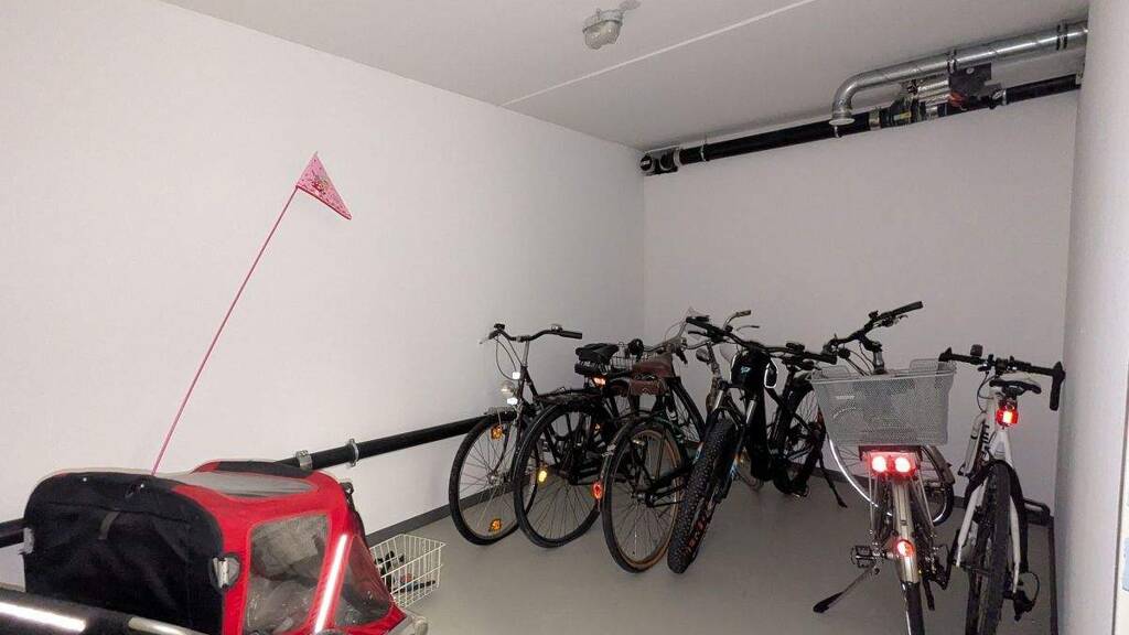 Zur Wohnung gehört ein mit ca. 3 m² kleines Kellerabteil, außerdem befinden sich im Kellerbereich ein gemeinschaftlicher Fahrradraum sowie ein gemeinschaftlicher Waschraum. Hier kann ebenfalls die Waschmaschine samt Trockner angeschlossen werden.