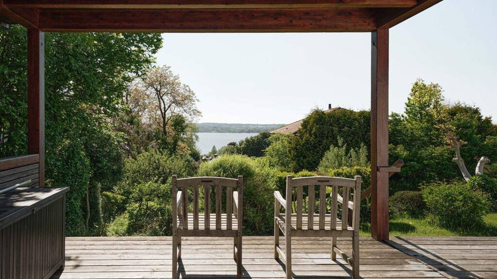 Dieses Einfamilienhaus aus dem Jahr 1955, erweitert durch einen geschmackvollen Anbau von 1996 und ein lichtdurchflutetes Atelier von 2003, vereint harmonisch Architektur mit zeitgemäßem Wohnkomfort. Auf einem großzügigen, liebevoll gestalteten Grundstück gelegen, besticht es durch seine erhöhte Position, die aus fast jedem Raum einen ungestörten Blick auf den Ammersee ermöglicht.