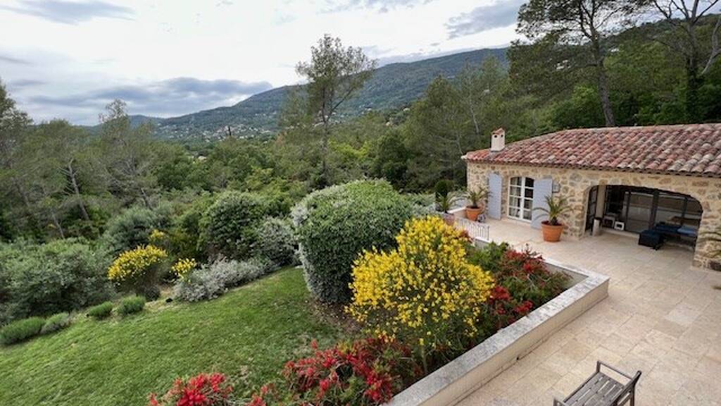 Ground Floor: Covered porch, entrance hall, guest WC, and a living room with fireplace opening onto a terrace. Rear kitchen leading to a covered carport. Fully equipped kitchen opens onto a generous dining area and a covered terrace with summer kitchen. Master suite with dressing room, bathroom, double shower, and terrace access.