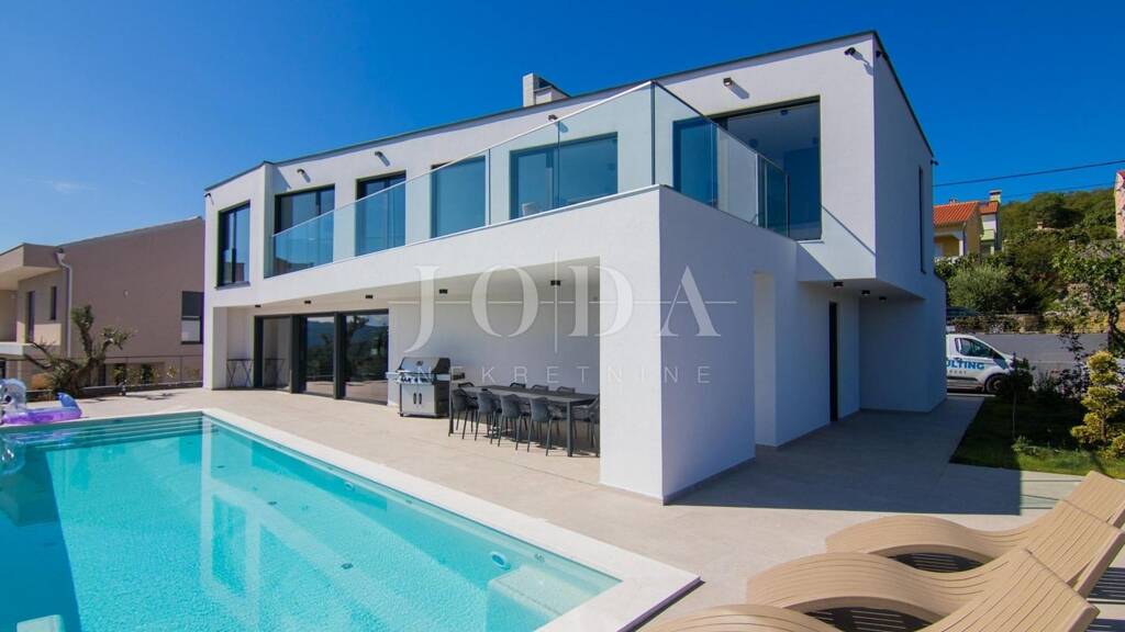 Das Haus mit einer Wohnfläche von insgesamt 180 m² erstreckt sich über das Erdgeschoss und das Obergeschoss. Im Erdgeschoss befinden sich eine Garage mit 21,70 m², ein großzügiges Wohnzimmer mit Küche und Essbereich, ein Abstellraum mit Waschmaschine und Trockner, ein Flur, ein Badezimmer sowie ein Fitnessraum. Im gepflegten Garten gibt es eine überdachte Terrasse von 33,60 m², eine Sonnenterrasse, ein Überlaufpool mit 42 m² sowie einen Grillplatz. Im Obergeschoss befinden sich vier Schlafzimmer, vier Badezimmer und ein Flur mit Treppenhaus. Drei Schlafzimmer haben Zugang zu einem gemeinsamen Balkon, von dem aus sich ein wunderschöner Blick auf Olivenhaine und das Meer in der Ferne eröffnet. Das Haus wird komplett möbliert und ausgestattet verkauft.