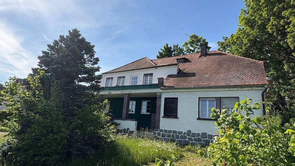 Großes Grundstück, Großes Haus: Das ursprüngliche Gebäude wurde ca. 1930 erbaut. Ein Anbau erfolgte in 1961. Der wesentliche Zustand des Hauses entspricht der Zeit um 1960. Um es in die "heutige Zeit" zu bringen, sind Sanierungsarbeiten notwendig. Die Wohnfläche beträgt ca. 235 m². Im Erdgeschoss ist die Küche und der großzügige Ess- und Wohnbereich. Zusätzlich gibt es 3 Zimmer, die früher als Arzt-Praxis genutzt wurden. Im ausgebauten Dachgeschoss ist das Bad und weitere 4 Zimmer. Der Dachboden ist nicht ausgebaut und wird als Abtstellraum verwendet. Im Keller ist die Öl-Heizung mit den Tanks untergebracht. Der Heizkessel ist aus dem Jahr 2012. Weitere Abstellräume sind im Keller vorhanden. Feuchtigkeitsschäden sind hier sichtbar.