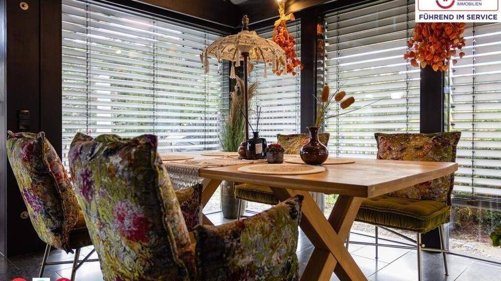 Das im Jahr 2001 auf einem 550 m² großen Grundstück errichtete Architektenhaus besticht durch seine zeitlose Fachwerkarchitektur, die das harmonische Zusammenspiel von Glas und Holz in Perfektion zelebriert. Mit einer Wohnfläche von ca. 240 m² bietet dieses Unikat ein durchdachtes Raumkonzept mit lichtdurchfluteten Räumen, fließenden Übergängen und stilvollem Interieur.
