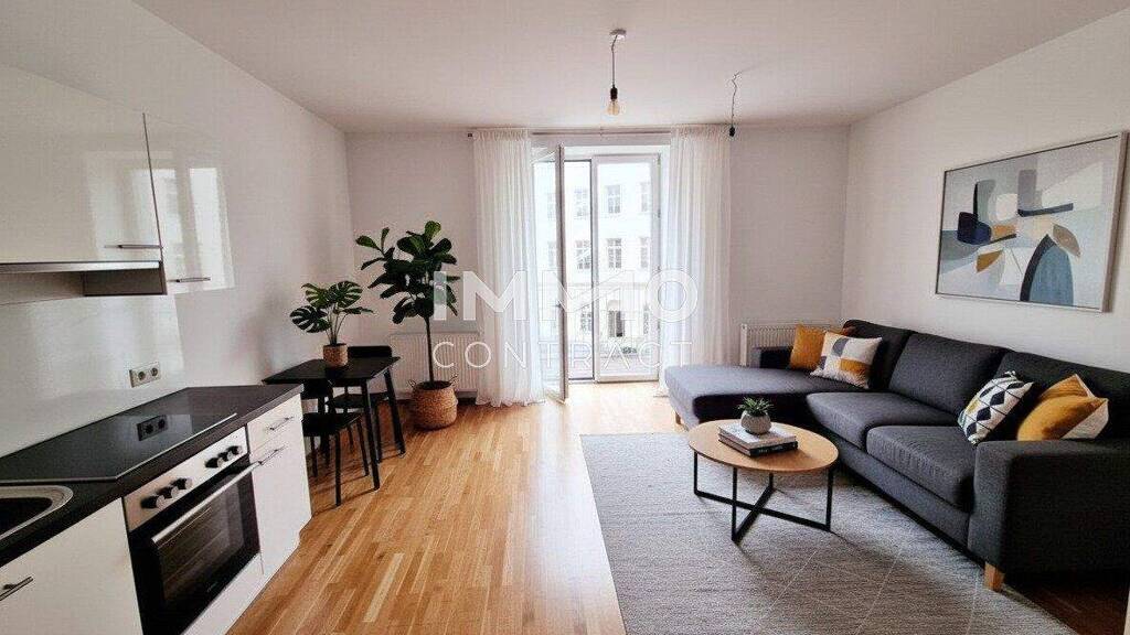 Die Wohnung besteht aus einem offenen Wohn-Schlaf-Essbereich mit moderner, ablösefreien Küche und einem großzügigen Badezimmer inkl. WC, der Balkon hat ein Ausmaß von 2 m².