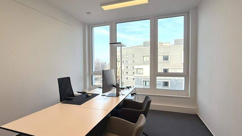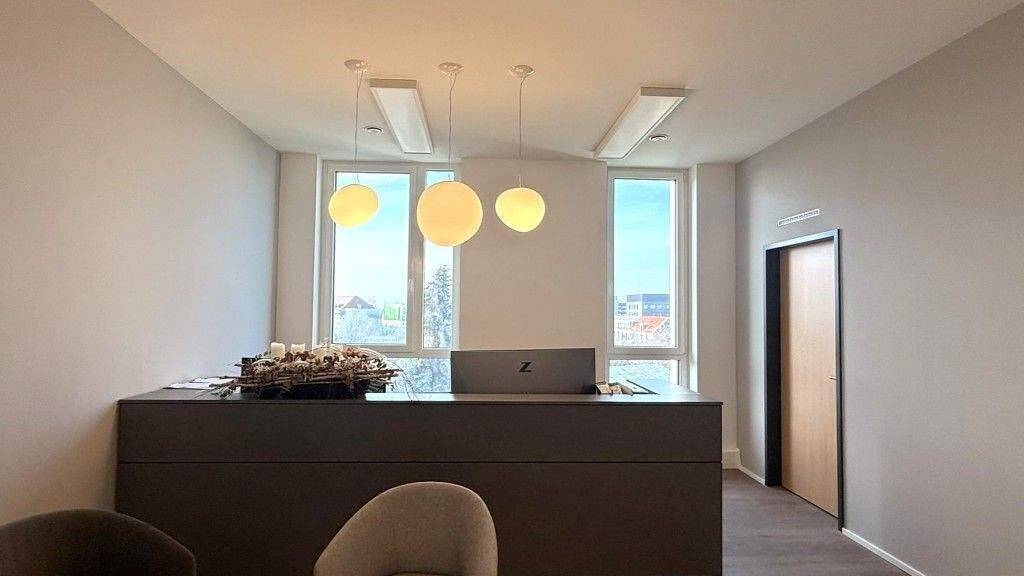 Flexible Flächengröße, flexible Laufzeit - Repräsentative Büroeinheit in exklusivem Neubau als Bürogemeinschaft, Untermiete oder Direktanmietung: Aktuell steht in dem Bürohausneubau eine Einheit mit insgesamt ca. 325 m² Bürofläche im 3. Obergeschoss zur Anmietung zur Verfügung. Die in der Fläche ansässige Anwaltskanzlei möchte die Räumlichkeiten zur Unter- oder Nachvermietung abgeben oder optional weiterhin in einer Bürogemeinschaft teilweise mitnutzen. Es sind demnach flexible Flächengrößen und Mietlaufzeiten möglich. Das viergeschossige Gebäude bietet neben Passivhausstandard eine hochwertige Ausstattung: raumweise steuerbare Heiz-/Kühldecke, CAT-7-Verkabelung, LED-Leuchten etc. Die Einheit ist aufgeteilt in einen Empfangsbereich, neun Büroräume, getrennte WCs, eine Teeküche, einen Serverraum sowie einen Archiv-/Lagerraum. Die lichte Deckenhöhe beträgt über drei Meter. Es stehen bis zu acht Stellplätze, davon sechs überdacht und zwei im Außenbereich, zur Anmietung zur Verfügung.