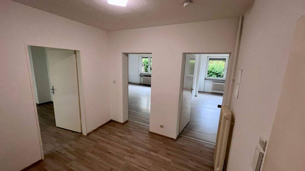 Beim Betreten dieser gut geschnittenen Erdgeschoss-Wohnung in einem kleinen Mehrfamilienhaus (4 Parteien) gelangen Sie in einen zentralen Flur, der alle Räume miteinander verbindet.