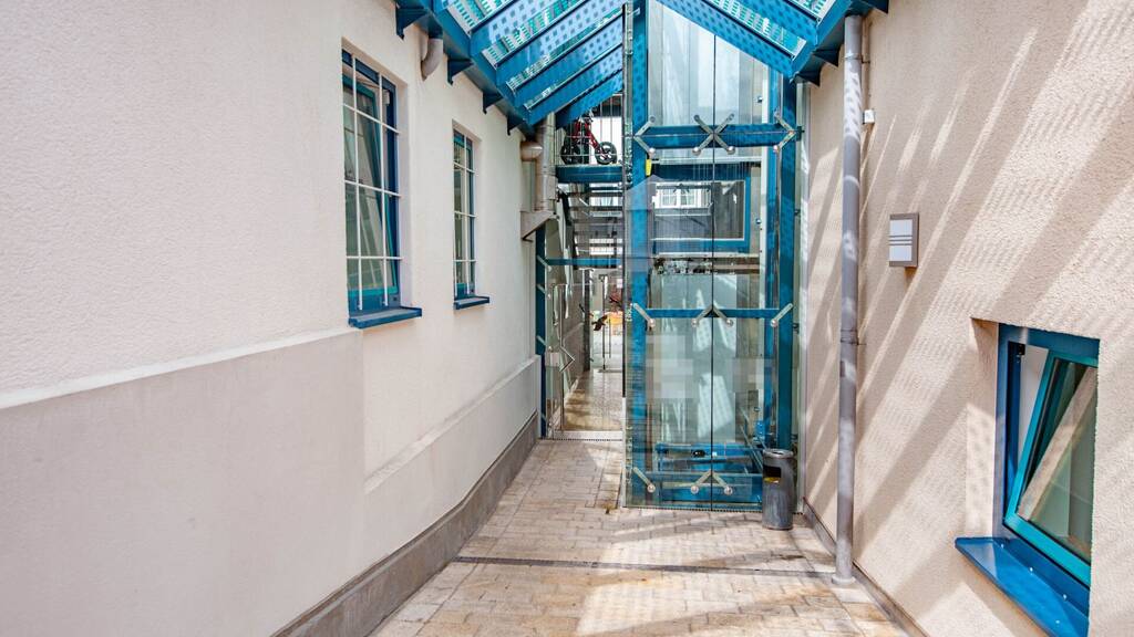 Die Praxis erreicht man über einen Treppenaufgang / Flur, der vom gemeinsamen Treppenhaus aus erreichbar ist, zusätzlich befindet sich ein Aufzug im Gebäude, der das Erreichen der Praxis erleichtert.