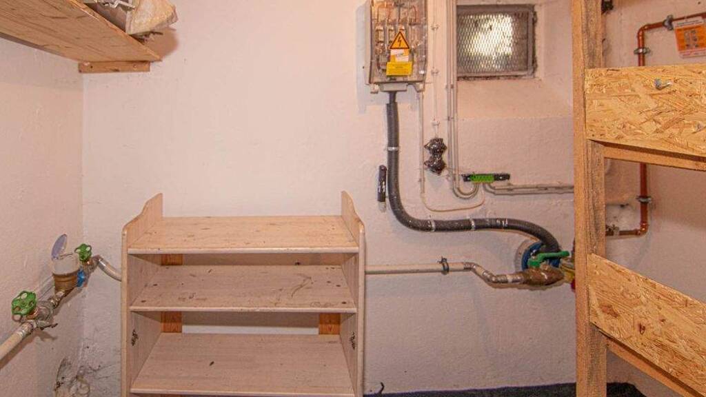 Das Haus ist mit einem Waschhaus, einem Partyraum (ebenfalls mit einem kleinen Holzofen für gemütliche Stunden ausgestattet), dem Heizungsraum und dem Technikraum voll unterkellert. Neben den beiden Holzöfen wird das Haus mit einer Gas-Zentralheizung beheizt. Auf dem Grundstück befindet sich noch ein Geräteschuppen und eine Holzlege.