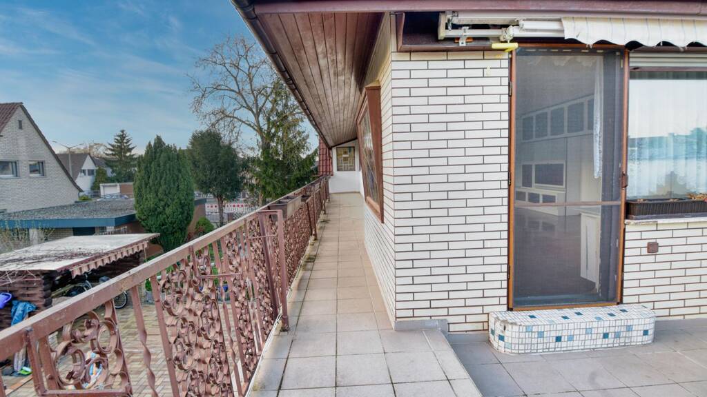 Über den Eingang gelangen Sie über den Flur auf der rechten Seite Richtung Garten zum ersten Schlafzimmer, während Sie auf der linken Seite nach der Küche und dem Bad ins Wohnzimmer gelangen. Kurz vor dem Wohnzimmer schließ sich der Treppenaufgang an, der in das 1.OG welches mit seinem großzügigen Wohn - und Esszimmer mit Ausrichtung Richtung Garten und einem großen Balkon heraussticht. Eine weitere Küche sowie ein Bad und das größte Schlafzimmer im Haus runden die Etage ab. Des Weiteren gibt es ein weiteres Dachgeschosszimmer mit Modernisierungspotential.