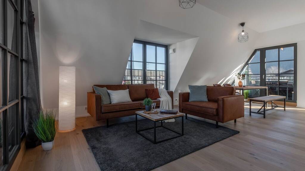 Ein Personenaufzug oder die innenliegende Treppe lässt Sie das im Obergeschoss liegende Objekt unkompliziert erreichen. Eine angenehme Raumhöhe schafft in der ca. 124 m² großen Immobilie ein wohnliches Ambiente. Neben dem offenen Wohn-/Essbereich mit Zugang auf dem Balkon gliedert sich die Wohnung zudem in drei Schlafzimmer, zwei Badezimmer sowie ein separates Gäste WC. Der Wohnbereich bietet ausreichenden Platz für eine gemütliche Sofalandschaft.