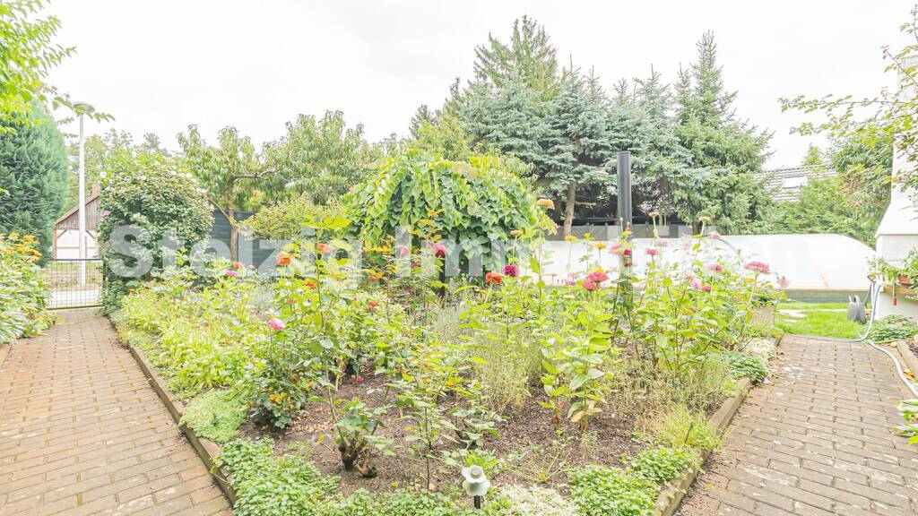 Trinkwasser- und Elektroanschluss sind vorhanden, ein Kanalisationsanschluss ist vorbereitet, und ein Swimmingpool mit Sandfilter und Wärmepumpe lädt zum Entspannen ein.