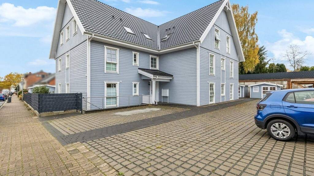 Im Jahr ca. 2021 wurde dieses Mehrfamilienhaus in Holzständerbauweise auf einem ca. 800 m² großen Grundstück errichtet. Die zu erwerbende Erdgeschoss-Wohnung verfügt über ca. 68 m² Wohnfläche, die sich auf 3 Zimmer, eine offene Küche, sowie ein Badezimmer mit bodentiefer Dusche verteilen. Vom Wohnzimmer aus lässt sich zudem die kleine Terrasse erreichen. Im südlichen Teil des Grundstücks befindet sich der zur Wohnung gehörende Schuppen. Als Heizsystem wird eine Wärmepumpe genutzt, die Wohnung verfügt über Fußbodenheizung. Besonders hervorzuheben ist die gute Energieeffizienz mit der Klasse A+.