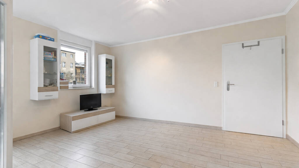 Die Wohnung liegt in einem sehr gepflegten Mehrfamilienhaus und bietet modernen Wohnkomfort. Der offene Wohnbereich mit integrierter Einbauküche schafft eine einladende Atmosphäre und gewährt direkten Zugang zum großzügigen Balkon. Das Schlafzimmer hat eine angenehme Größe. Hier können Sie ein Bett und ein Schrank stellen.