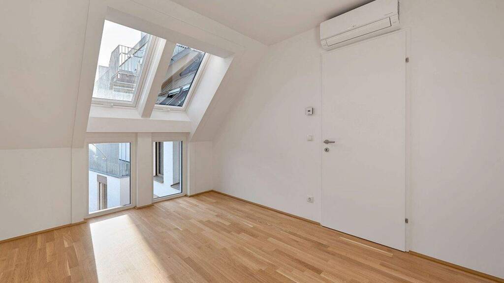 Die geräumige, vollklimatisierte Dachgeschoss-Wohnung verteilt sich auf 3-Zimmer mit ca. 72 m² Wohnnutzfläche sowie einem Balkon.