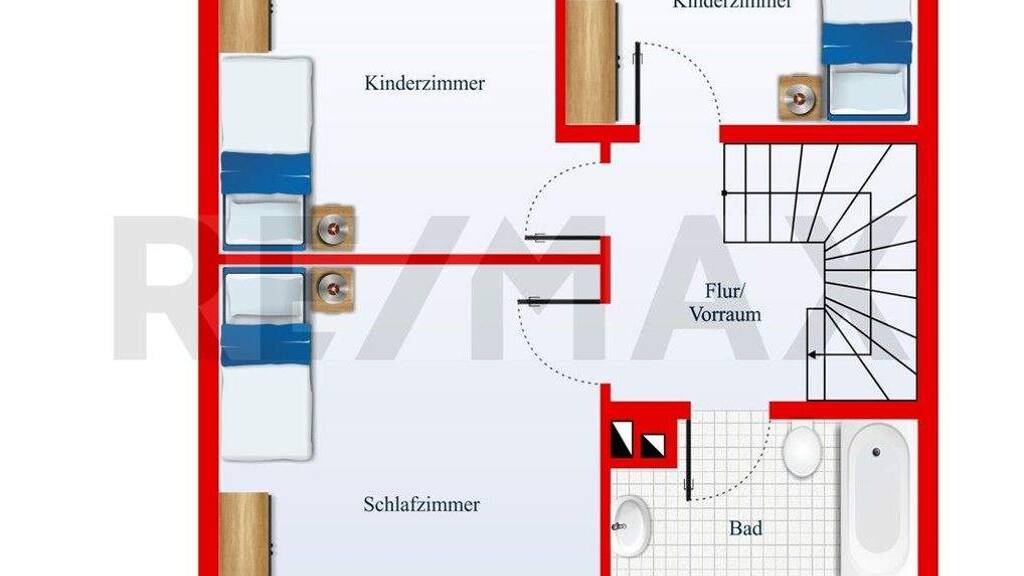 Im Obergeschoss befinden sich die Schlafräume: