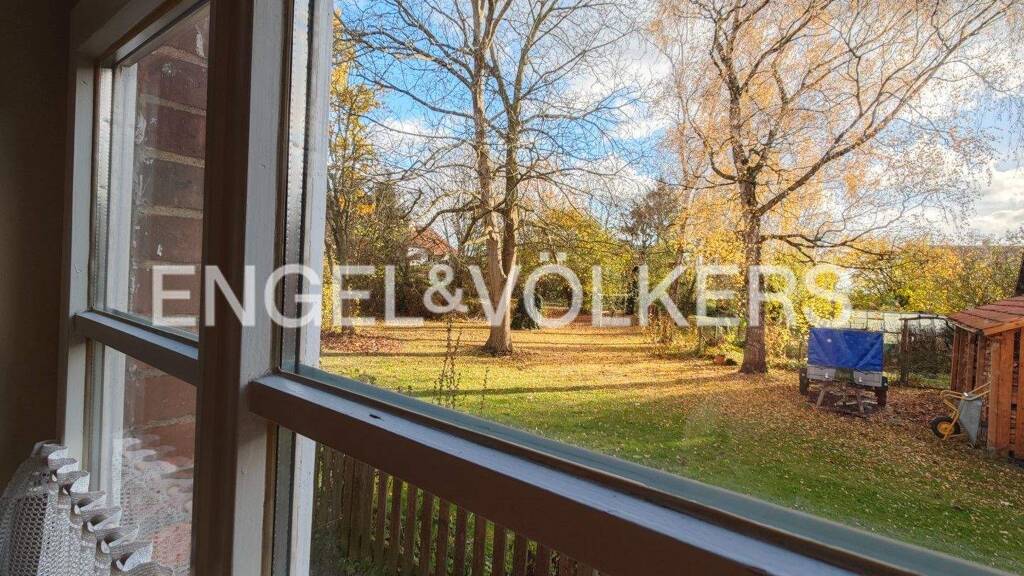 Auf dem kompakten Grundstück von 370 m² erstreckt sich die Gesamtfläche von ca. 269 m², die sich über zwei Etagen sowie ein Dachgeschoss verteilen, dass noch zusätzliches Ausbaupotential darstellt. Die Immobilie verfügt über insgesamt 8 Zimmer und 2 Badezimmer, was vielseitige Nutzungsmöglichkeiten bietet - sowohl für die große Familie als auch für Liebhaber von Raum und Freiheit. Ein gemütlicher Kamin im Wohnzimmer im Erdgeschoss sorgt für eine behagliche Atmosphäre an kalten Wintertagen. Die im Flur befindliche Vollholztreppe verbindet die Etagen und unterstreicht den traditionellen Charakter des Hauses.