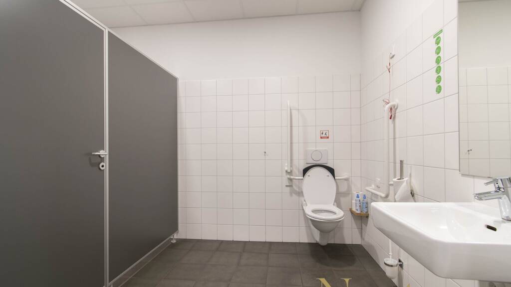 Weiters stehen getrennte Damen- und Herrentoiletten (behindertengerecht), eine Dusche, Garderoben und ein Aufenthaltsraum samt TeekĂĽche zur VerfĂĽgung.