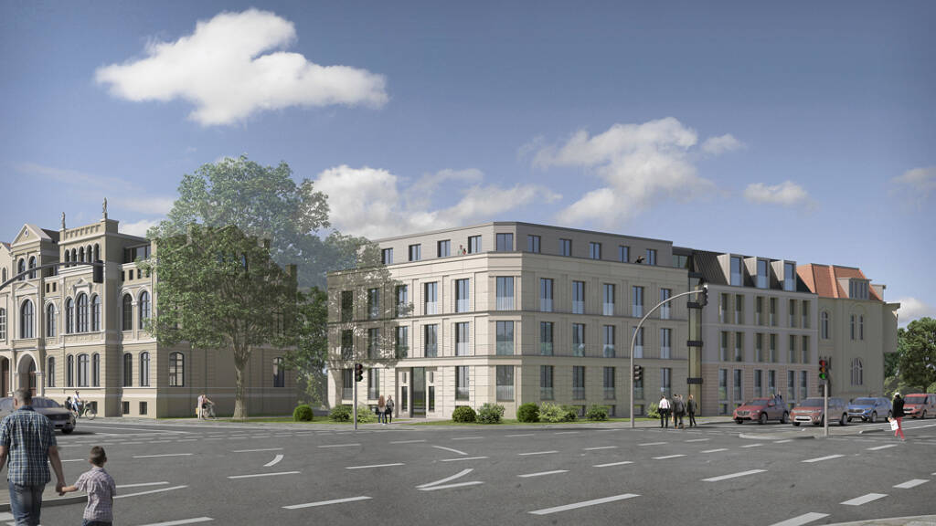 Dieser Neubau, inmitten der historischen Umgebung der Altstadt, wird Anfang 2026 in begehrter Schweriner Adresslage in der renommierten Alexandrinenstraße am Pfaffenteich fertiggestellt. Die exklusive Lage rund um den Pfaffenteich zeichnet sich durch die vielfältige Architektur der historisch wertvollen Häuserensembles der alten Schweriner Kaufleute sowie durch die attraktive Uferpromenade, gesäumt mit dem alten Baum-bestand, rund um den künstlich angelegten Pfaffenteich aus.