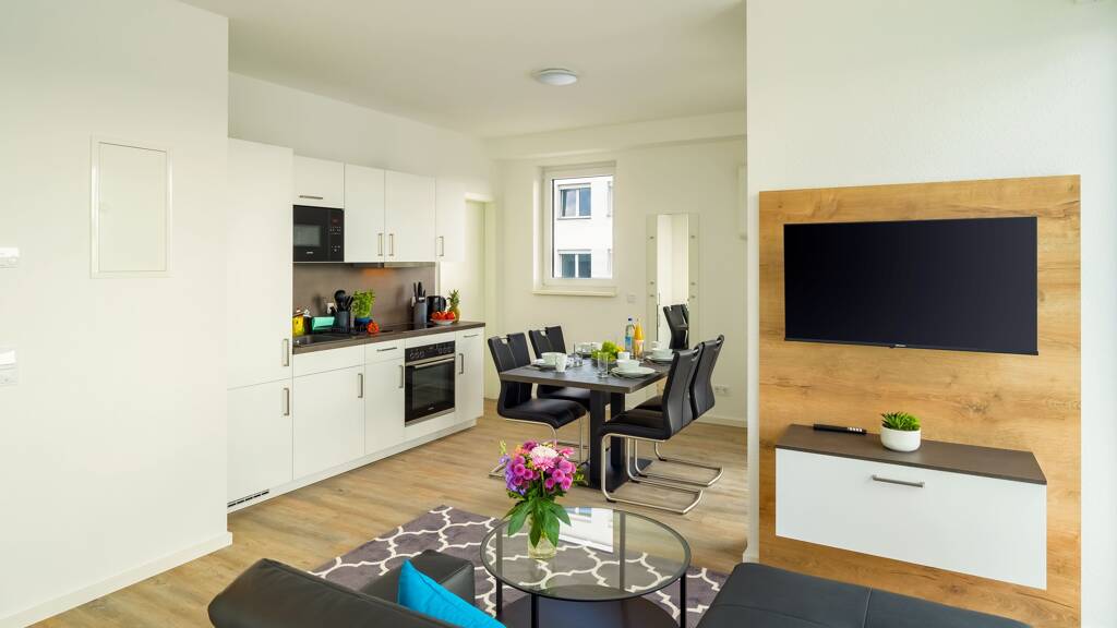 Unsere Leistungen & Service: - voll möblierte Apartments für 1 bis 2 Personen - komplett ausgestattet, für einen Einzug genügt Ihr gepackter Koffer - flexible Buchungszeiten ab 1 Woche - unkomplizierte Abwicklung - persönlicher Ansprechpartner