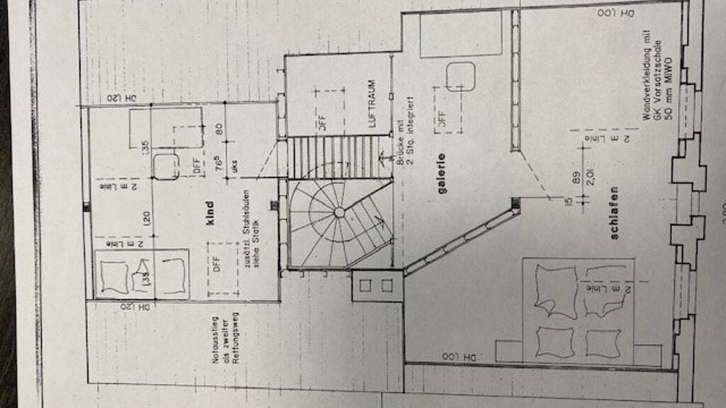 Obere Ebene: Galerie, Schlafzimmer und über kleine Brücke zum Kinderzimmer
