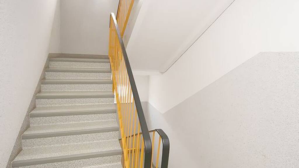 Die Wohnung befindet sich im 2. Obergeschoss eines gepflegten Mehrfamilienhauses und präsentiert sich nach einer Renovierung in einem zeitgemäßen Zustand. Die Wände sind mit moderner Raufasertapete in elegantem Weiß gestaltet und schaffen eine helle, einladende Wohnatmosphäre.
