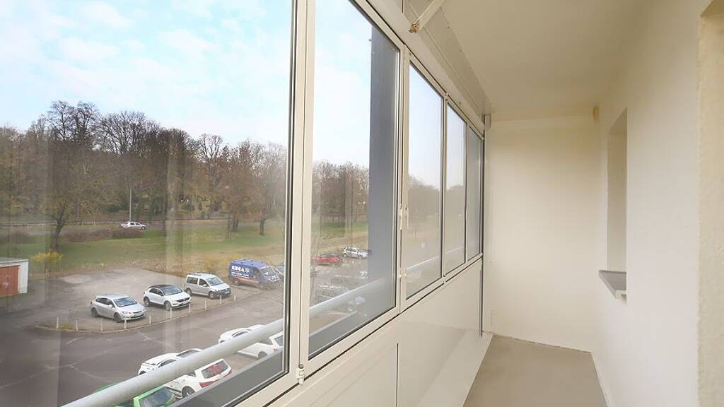 Das großzügig geschnittene Wohnzimmer bietet direkten Zugang zu einem ca. 6 m² großen, vollverglasten Balkon, der den Wohnraum ideal erweitert und zum Verweilen einlädt.