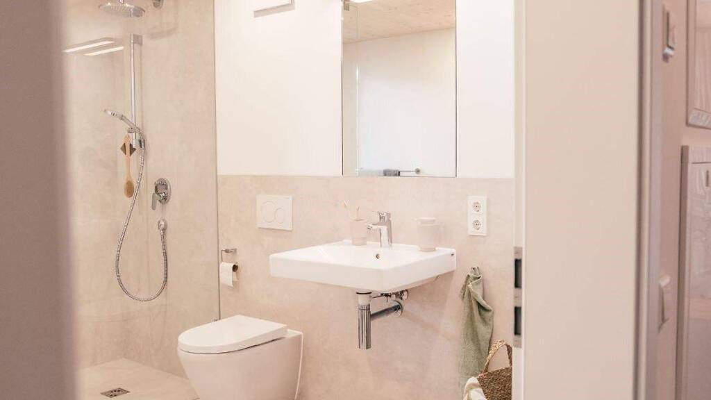 Mit klarem Design und zeitloser Eleganz überzeugt das hochwertig und modern gestaltete Badezimmer und schafft auf diese Weise eine ganz natürliche Wohlfühlatmosphäre.
