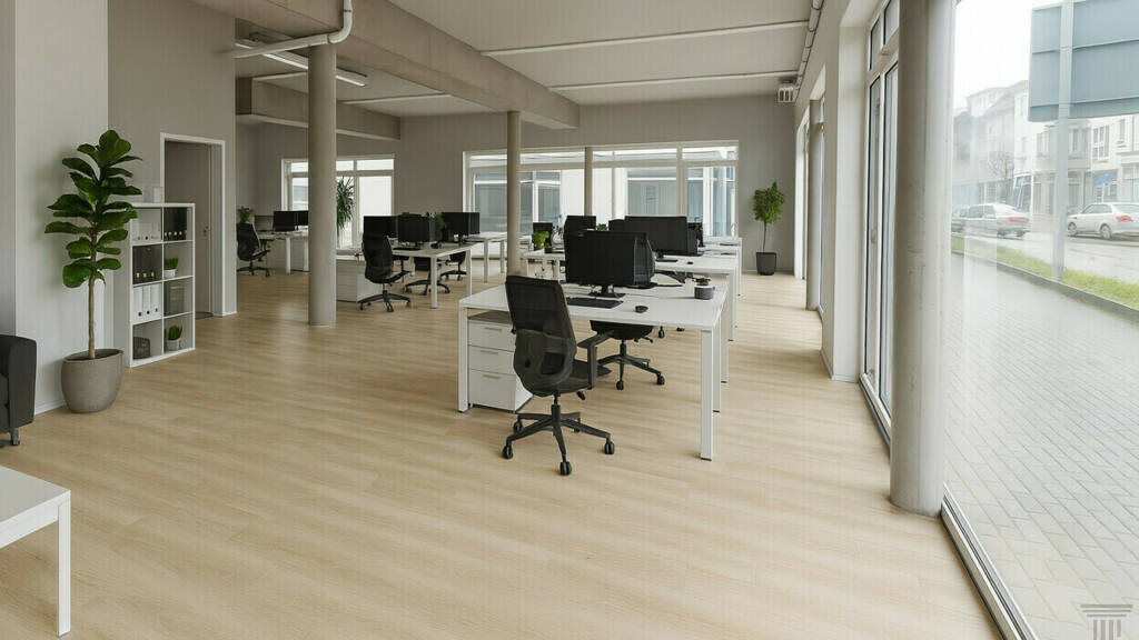 Die hellen Raeumlichkeiten tragen zu einer angenehmen Arbeitsatmosphaere bei.