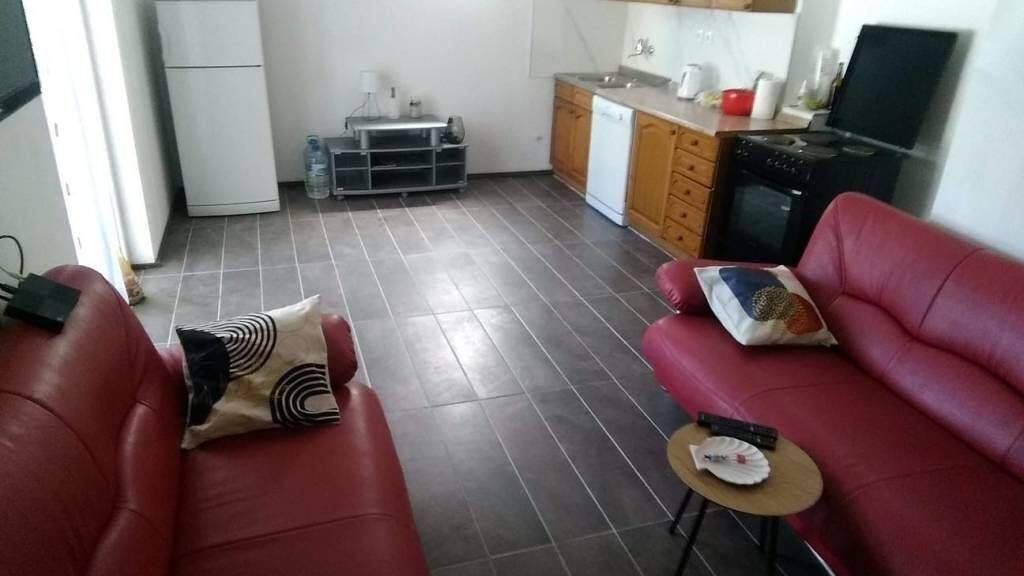Die Wohnung hat eine Fläche von 90 m2 und besteht aus einem Wohnzimmer und einer Küche, einer Speisekammer, 3 Schlafzimmern, einer Galerie, einem Badezimmer, einer Toilette, einem Balkon, einer Terrasse (10 m2) und einem Gartenbereich von 50 m2.