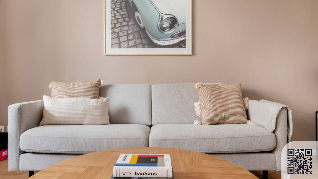 Wie bei jeder Blueground-Wohnung, findest du bei diesem 3-Zimmer-Objekt sorgfältig gestaltete Räumlichkeiten mit tollen Möbeln und einer voll ausgestatteten Küche vor. Und dank unserer hochqualitativen Matratzen hast du die Gewissheit, dich immer wie zu Hause zu fühlen. Wenn du dann für ein wenig Spaß bereit bist, kannst du dich von der Stimmung auf Berliner Straßen mitreißen lassen oder mit dem hochwertigen drahtlosen Lautsprecher oder Smart-TV das Entertainment zu dir nach Hause holen. Diese Wohnung verfügt über eine eigene Waschmaschine mit Trockner.